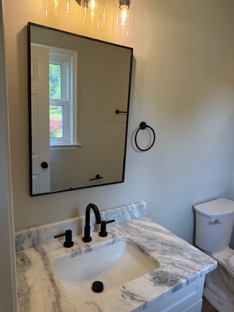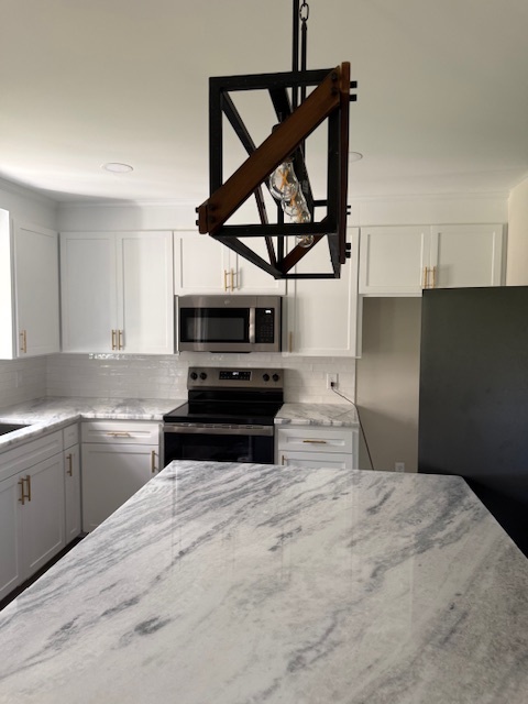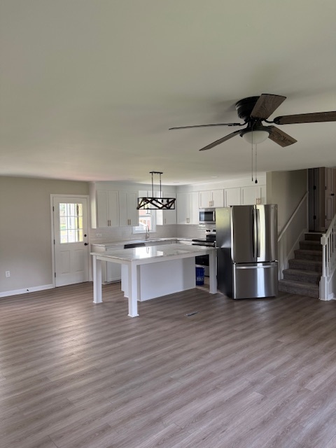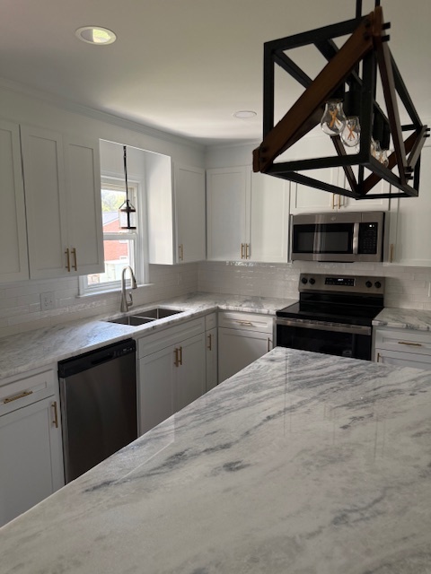 This 3 bedroom, 2 full bath split level home has been totally updated - New flooring, fresh paint, new appliances, and the list goes on. It has an open kitchen/living room area, family room, deck with steps leading to back yard, unfinished storage area with washer/dryer hook-ups, paved drive and a outdoor storage shed.
